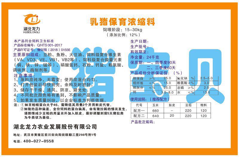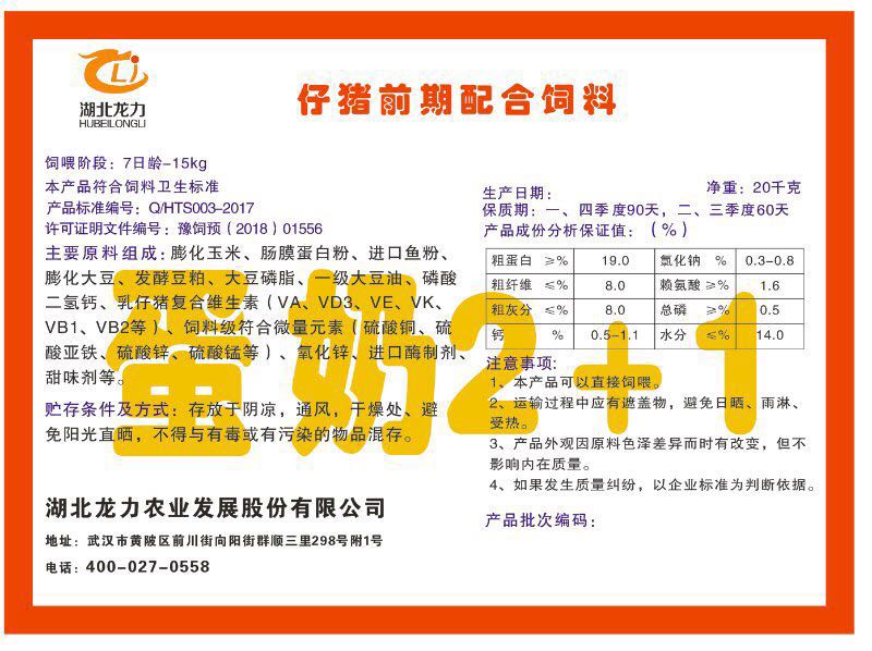 湖北龍力農(nóng)業(yè)發(fā)展股份有限公司坐落于武漢市黃陂區(qū)前川街向陽街群順三里298號(hào)附1號(hào)。公司成立于2014年6月,公司自成立以來把“創(chuàng)全球最大養(yǎng)豬綜合服務(wù)”為企業(yè)愿景。致力于打造教保料品牌”作為公司發(fā)展的明確目標(biāo)。公司一直致力于豬營養(yǎng)的研究和開發(fā),積極與國內(nèi)外高校和科研機(jī)構(gòu)合作,推廣養(yǎng)豬技術(shù)、動(dòng)物營養(yǎng)新概念,向世界農(nóng)牧企業(yè)學(xué)習(xí)與合作。公司采用國內(nèi)先進(jìn)的生產(chǎn)工藝,選擇高精度電子配料秤,高均勻度、無殘留混合機(jī)等先進(jìn)設(shè)備....